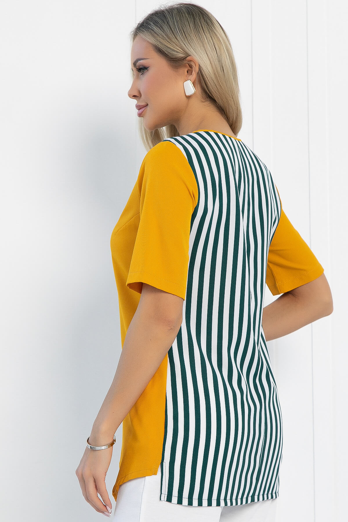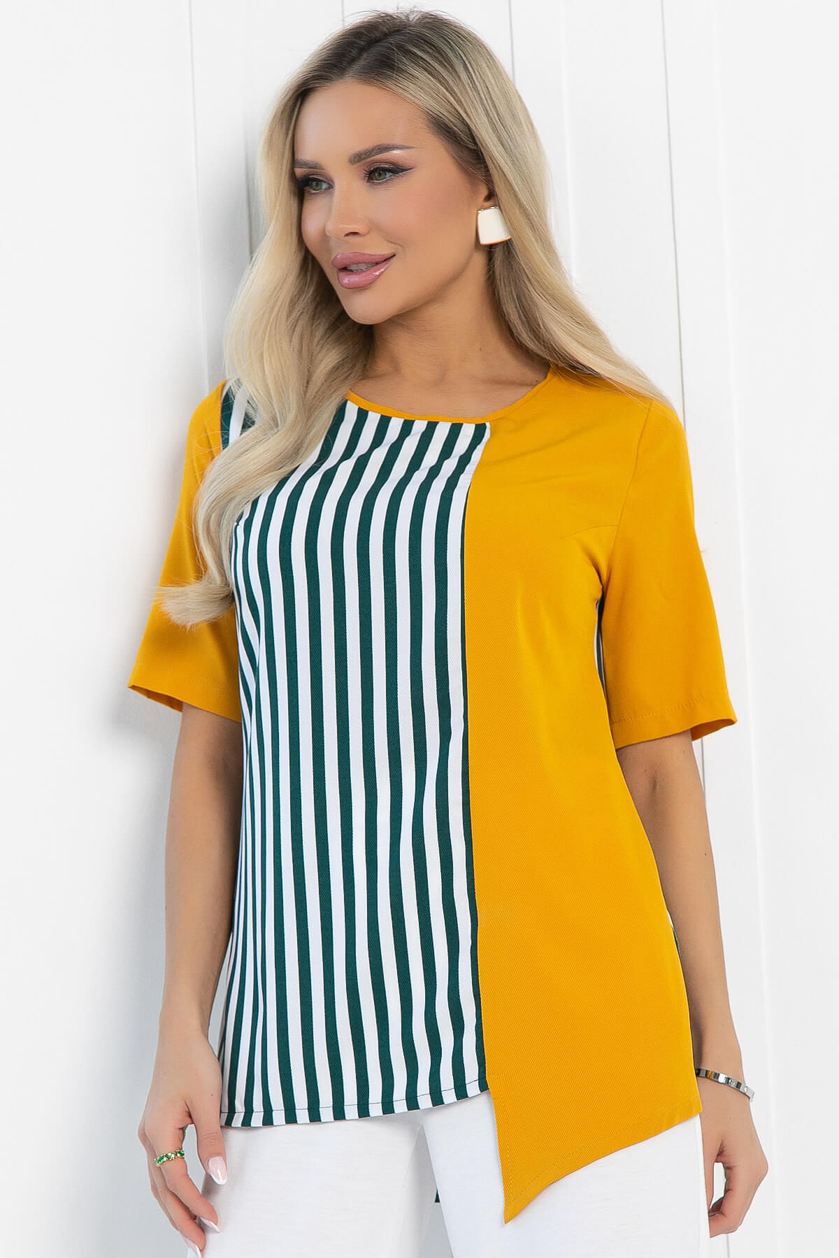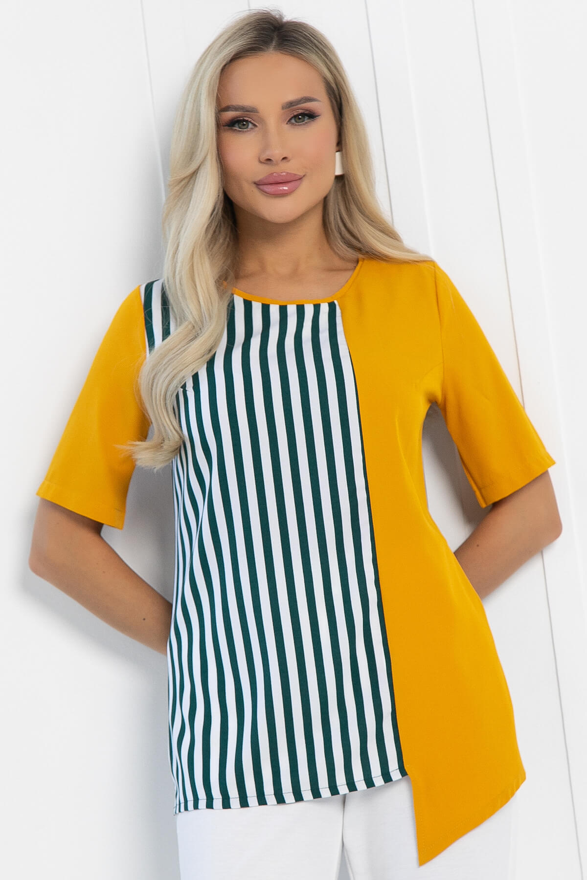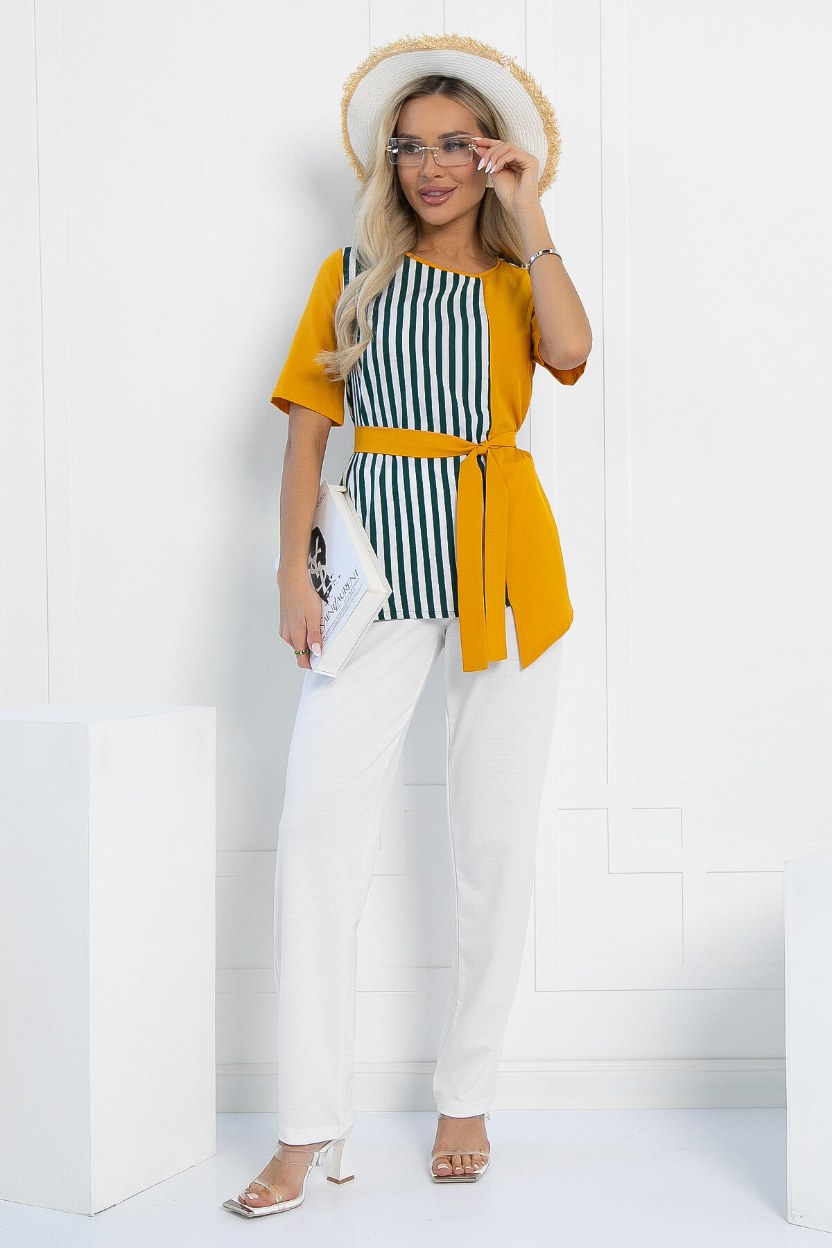 Яркая блуза из нежной блузочной ткани станет великолепным дополнением вашего гардероба! Перед блузы короче спинки, что придает ей необычный акцент в дизайне. Вы можете подчеркнуть талию с помощью пояса, который идет в комплекте, что придаст вашему образу дополнительную женственность. Разрезы по бокам добавят вашему образу легкость и изящество. Рукав короткий втачной, горловина округлая.