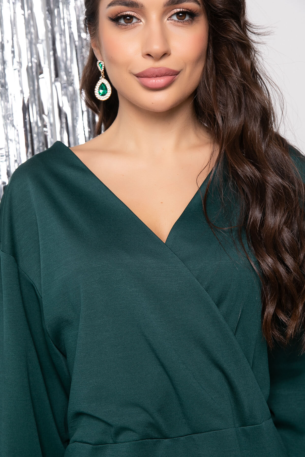 Летящее платье платье из трикотажа выглядит сдержано, но в то же время стильно и празднично. Изделие обладает акцентными элементами, которые придадут образу женственности. Элегантный вырез с имитацией запах подчеркнет зону декольте, по низу изделия широкое кружево, которое сделает акцент на ножках и визуально удлинит их. Рукав длинный со спущенным плечевым швом.