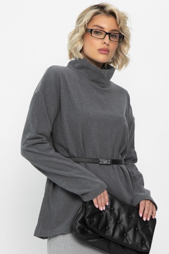 Удлиненный джемпер с воротником-стойкой — это идеальное сочетание удобства. Он изготовлен из очень приятной к телу ткани. Он имеет длинный рукав и асимметричный свободный крой, что делает его незаменимым в холодное время года. Серый цвет джемпера подходит к любому образу. А благодаря свободному крою он будет особенно хорош для будущих мам.