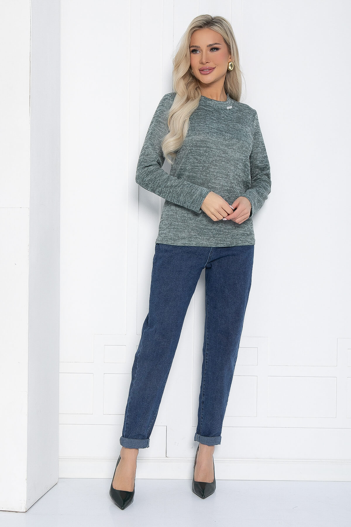 Мягкий и невероятно удобный джемпер прекрасно подойдёт для повседневного использования. Джемпер свободного кроя, с длинным рукавом. Классическая округлая горловина с декоративным элементом в виде трёх жемчужин. Благодаря своей универсальности джемпер будет легко сочетаться с различными элементами вашего гардероба.