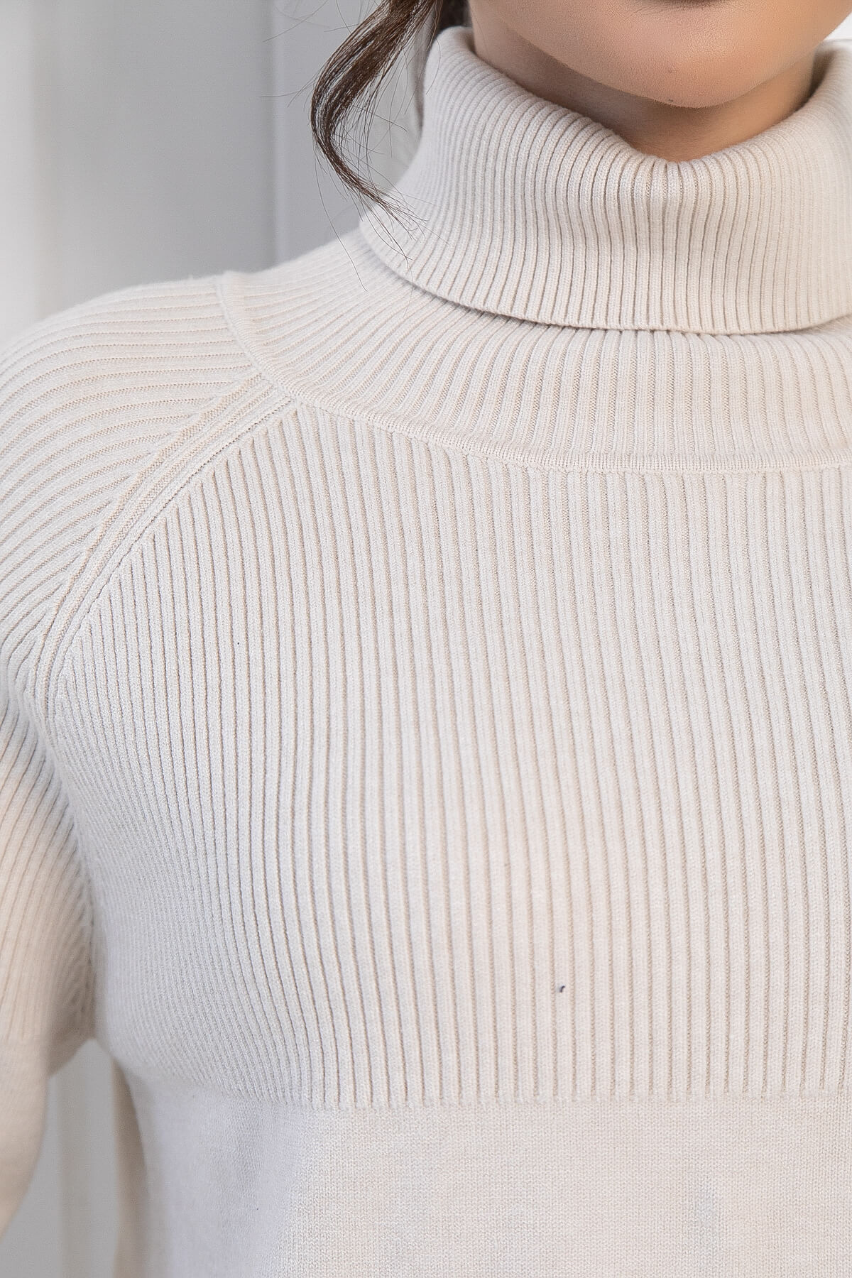 Нежный вязаный свитер для уютных и тёплых образов в прохладное время года. Гармоничное сочетание видов вязки дополнено изящными фактурными полосами в тон, делает теплую кофту универсальной моделью как для повседневной носки, так и для особых случаев. Выполнен с воротником-хомутом и рукавом-регланом, имеет умеренно-свободный силуэт и комфортную посадку по фигуре, благодаря которым в нем будет комфортно и беременным. Одинаково хорошо сочетается с брюками прямого кроя ярких и приглушенных расцветок, джинсами и кожаными брюками светлых оттенков.