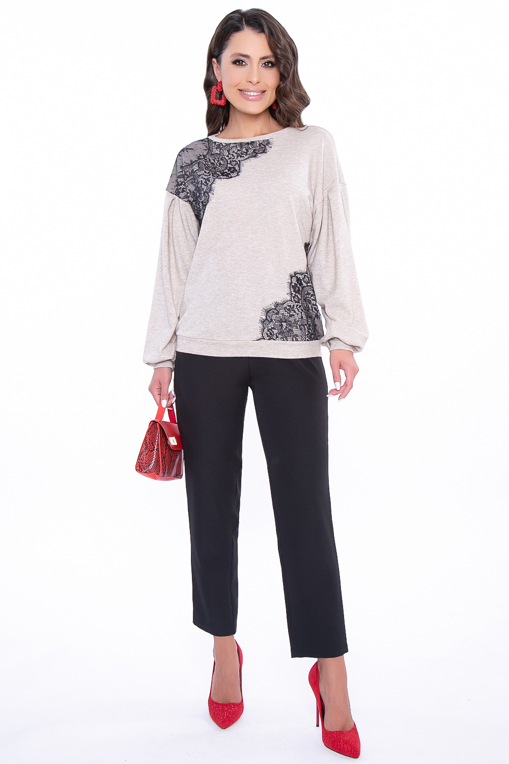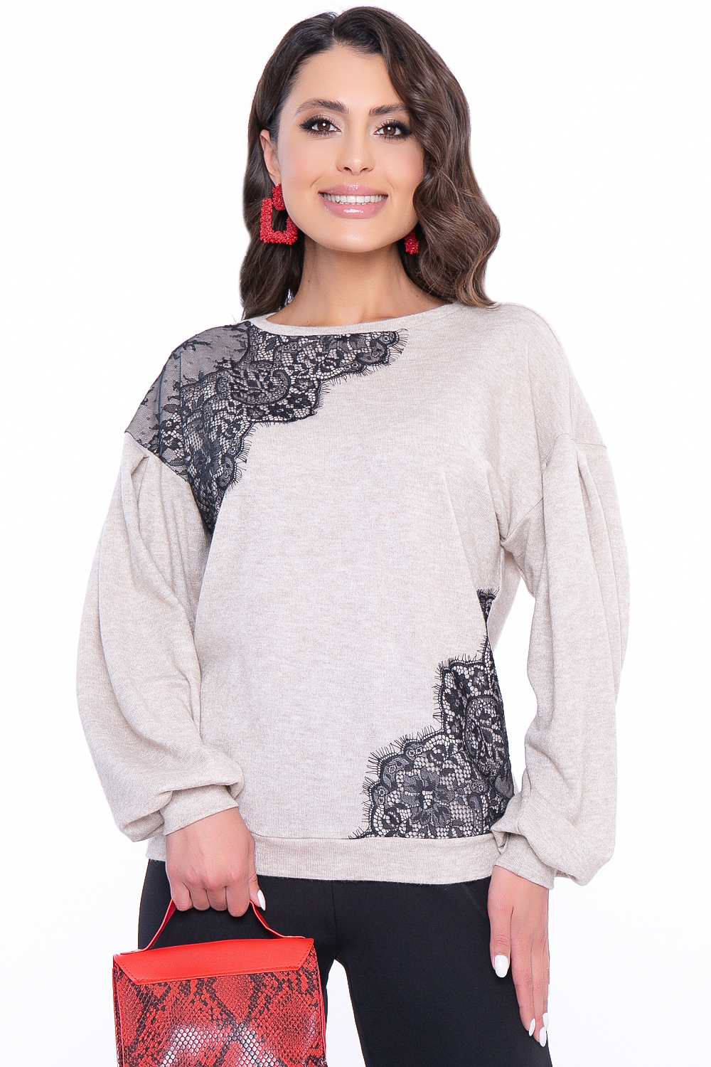 - Джемпер из мягкого трикотажа с гипюровыми элементами декора;