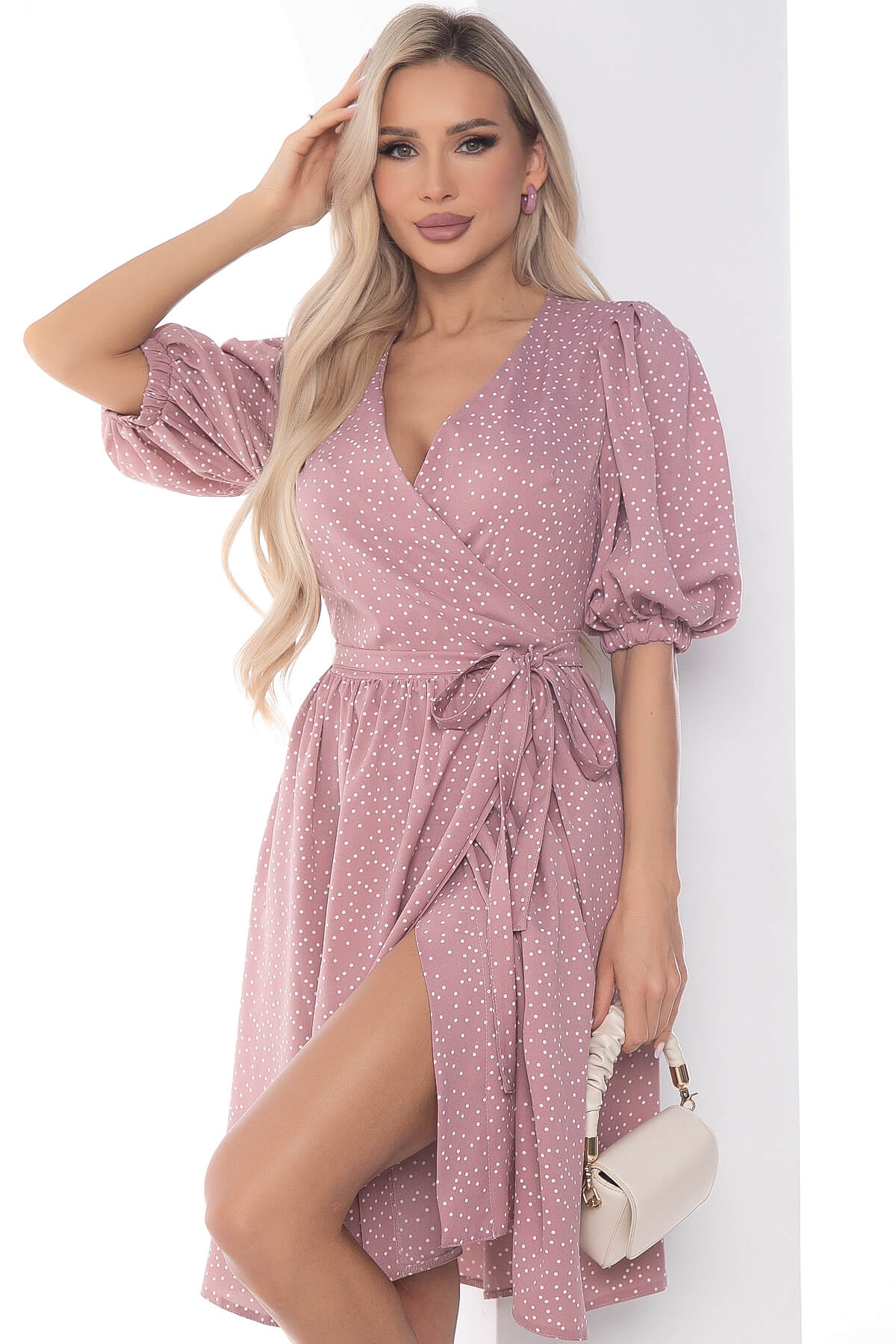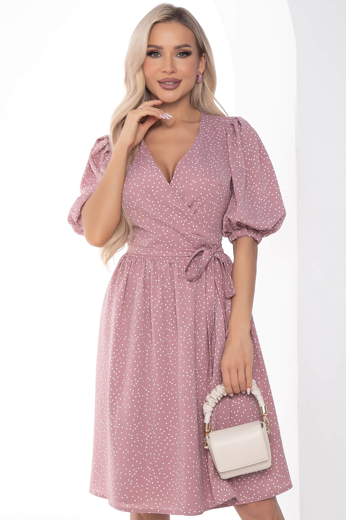Невероятно женственное платье в роскошном пудровом оттенке. В таком платье вы будете выглядеть неповторимо. Пышная юбка делает образ еще более романтическим. Платье скроено на запах, что позволяет комфортно фиксировать его по линии талии. Рукав втачной, укороченный, по низу на резинке.