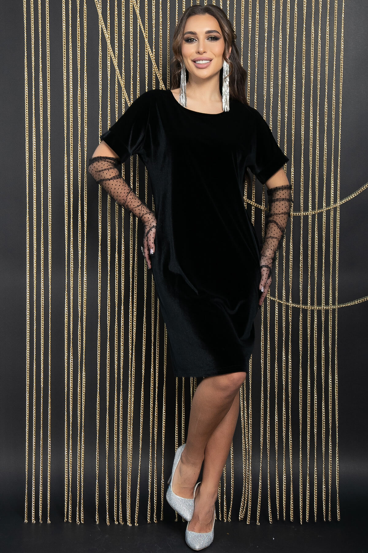 Почувствуйте себя королевой в этом платье! По спинке выполнен декоративный вырез, акцентирующий внимание на вашем образе. Рукав цельнокроеный короткий с манжетой по низу подходит абсолютно для любого типа и телосложения фигуры и скрывает недостатки.