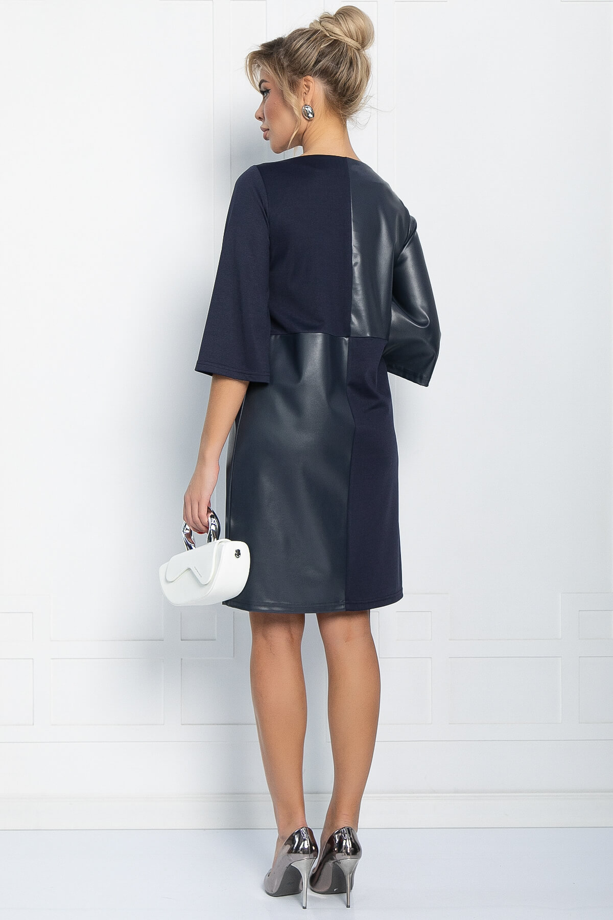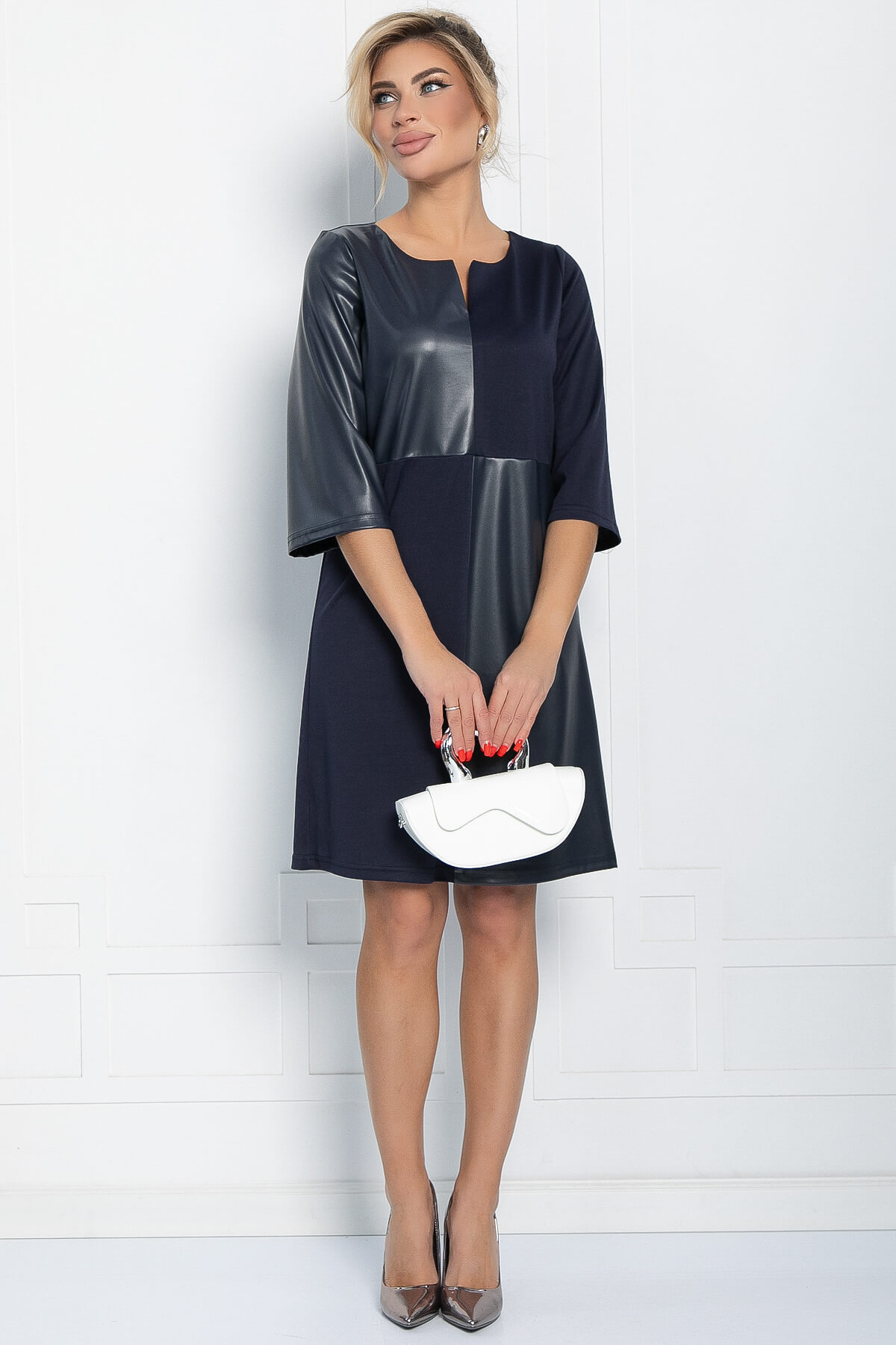 Стильное и удобное платье-трапеция, комбинированное вставками из кожи, выглядит красиво и привлекает внимание. Свободный крой модели позволяет скрыть недостатки фигуры. Рукав укороченный, цельнокроеный. Классическая длина вытягивает силуэт, поэтому подходит на любой рост. Комфортный крой платья позволяет надевать как на деловую встречу, так и на романтический вечер. Округлый вырез с V-образным элементом придает образу нежности и женственности.