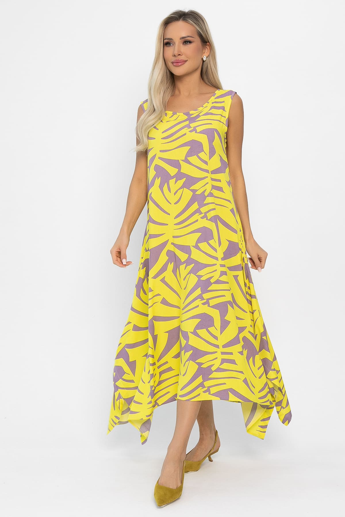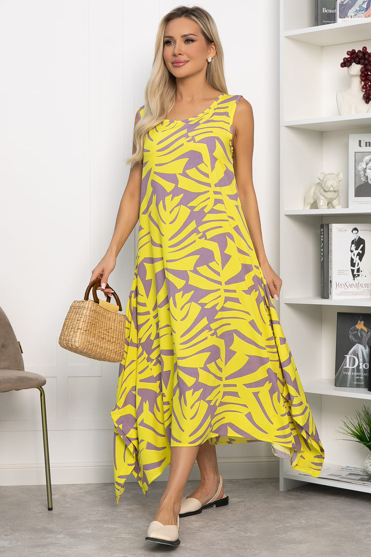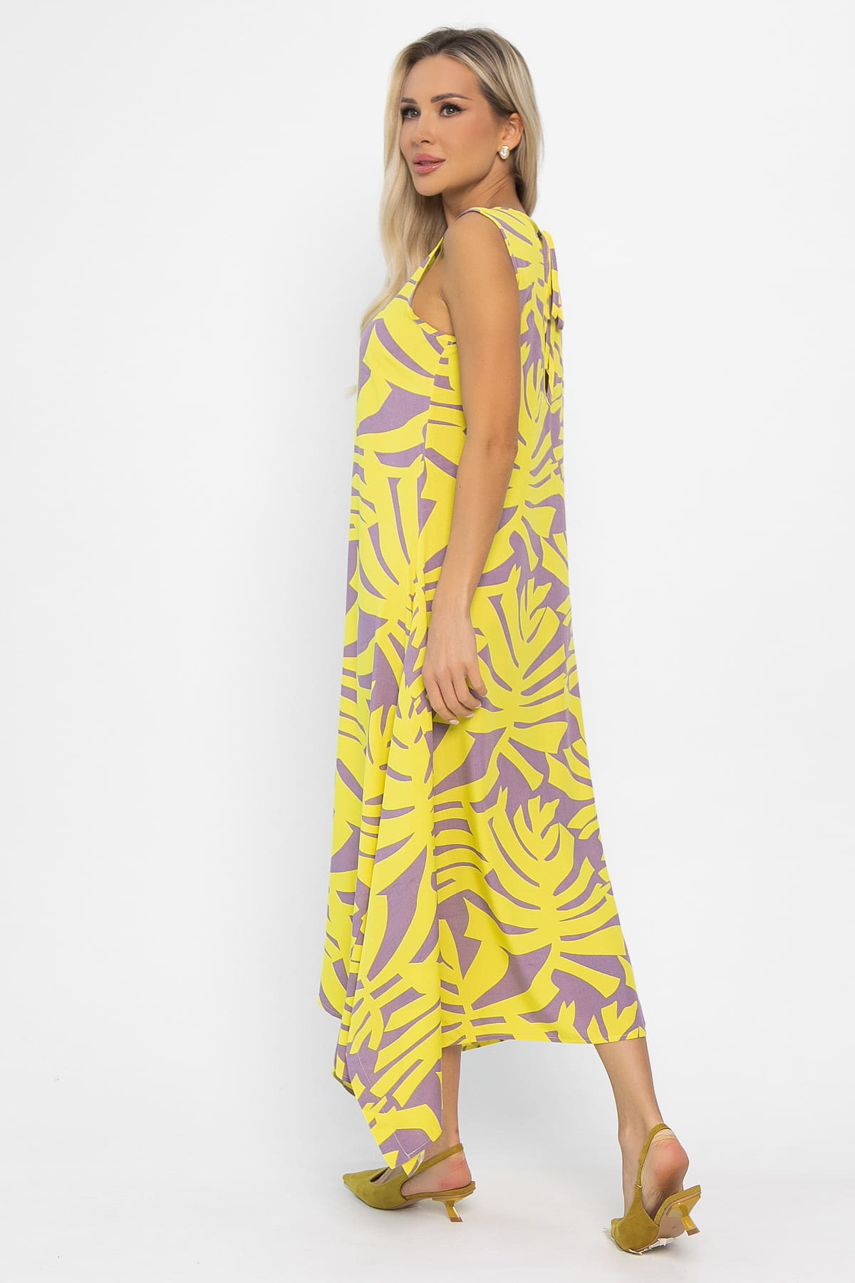 Стильный сарафан свободного кроя. Модель с круглым вырезом горловины и оригинальным вырезом на спинке, украшенным завязками для дополнительного акцента. Низ сарафана выполнен клиньями, что создает легкую и воздушную силуэтную линию. Универсальность сарафана позволяет использовать его в самых разных образах: поездка на пляж, встреча с подругами или обычных поход по делам.