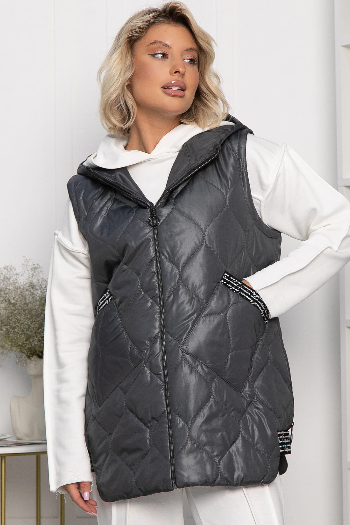 Стильный и практичный жилет в оттенке графит станет незаменимым спутником в прохладную погоду.