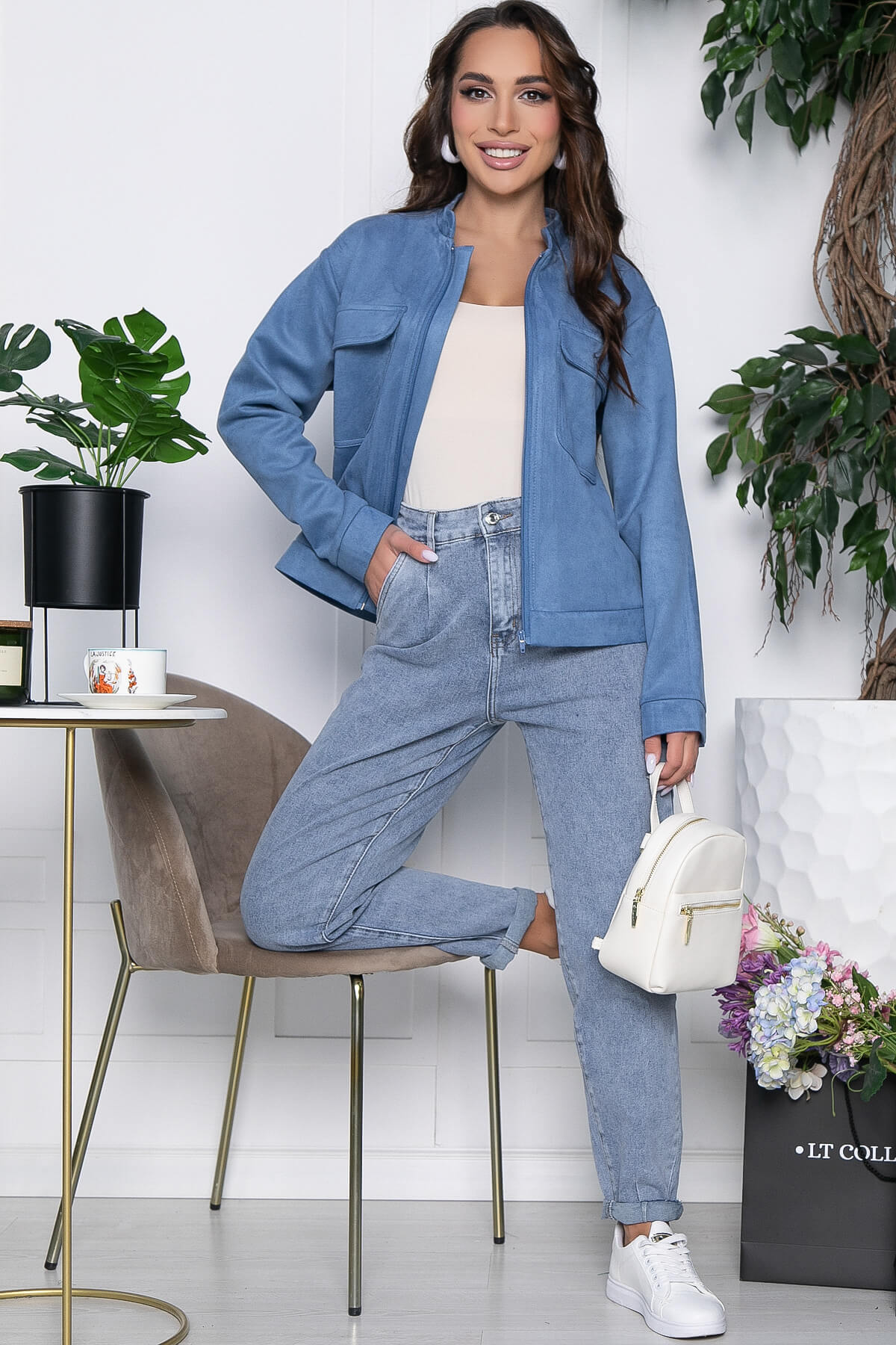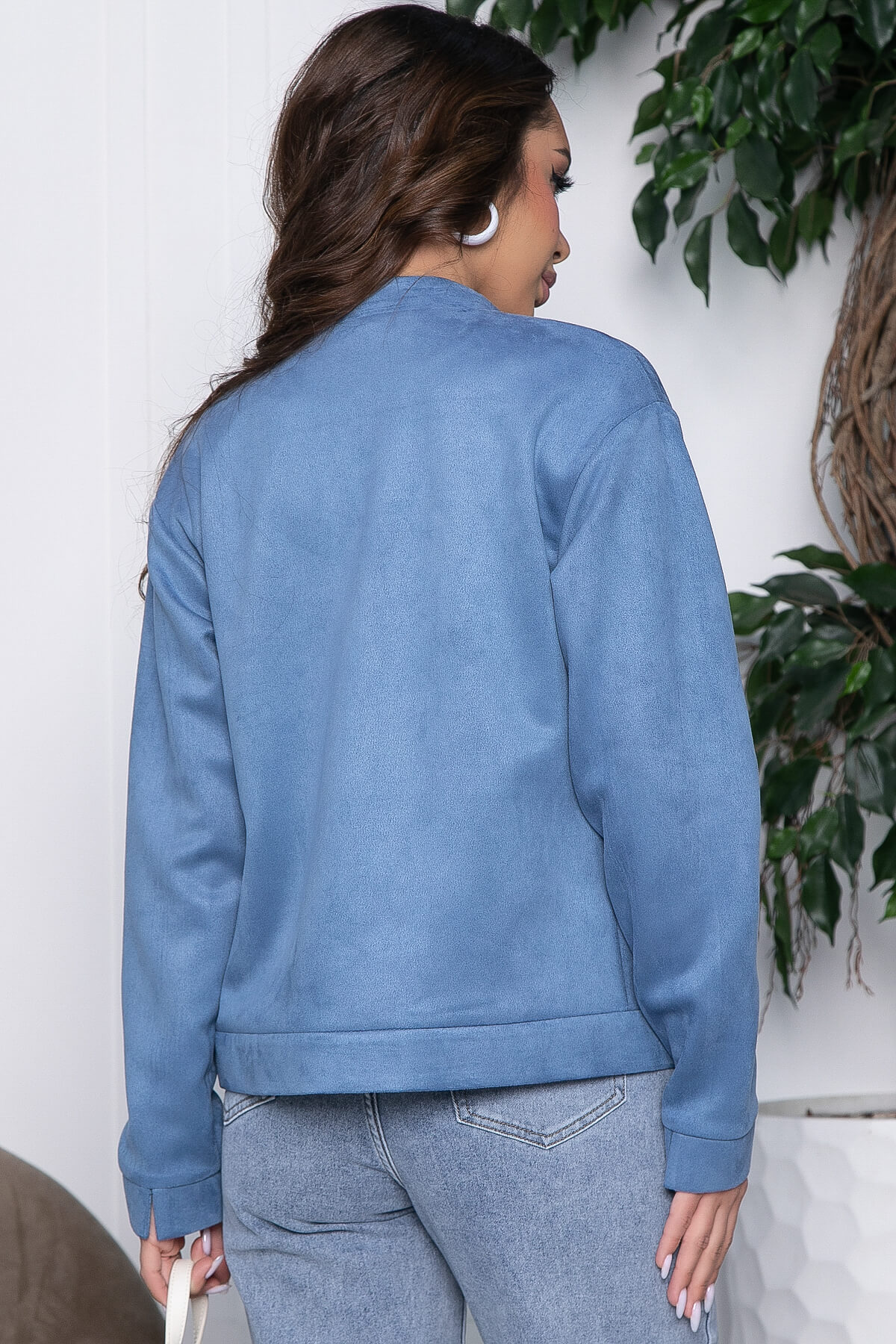 Универсальный замшевый жакет будет отлично сочетаться с платьями, юбками и брюками. Спереди присутствует молния. Изделие без подкладки.